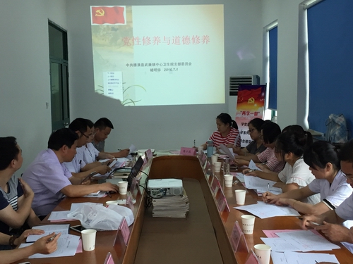 7月1日,为纪念建党95周年,持续深化“两学一做”学习教育,武康中心卫生院在上柏分院召开“两学一做”学习教育暨纪念建党95周年专题党课,大会由支部书记罗建良主持,全体党员参加。